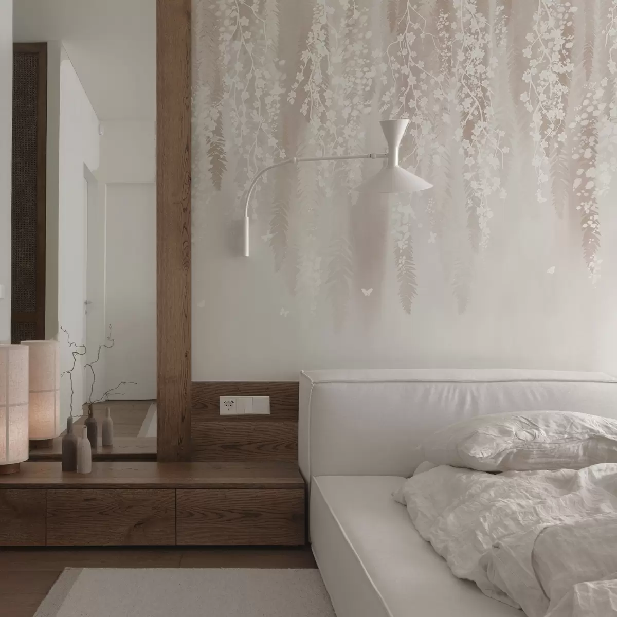 Carta da parati Rami leggeri con fiori bianchi su uno sfondo delicato nr. w04417
