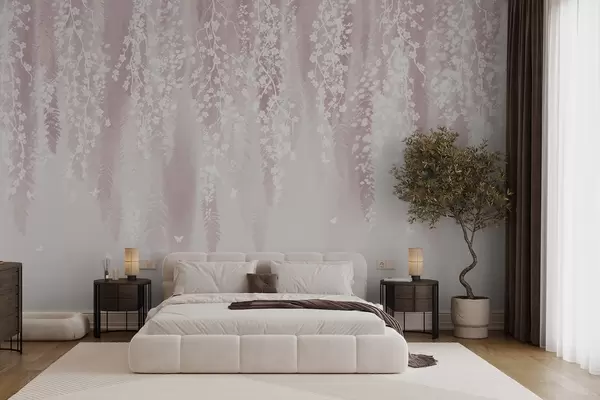 Carta da parati Versione rosa dei rami con fiori bianchi nr. w04417v1