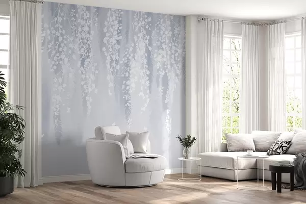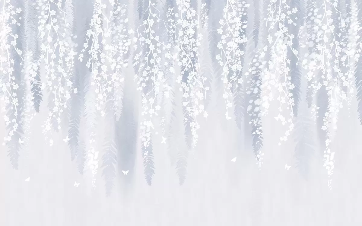 Carta da parati Versione blu fredda di rami con fiori bianchi nr. w04417v2