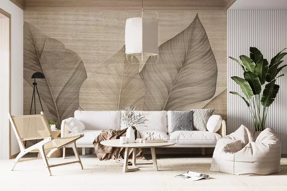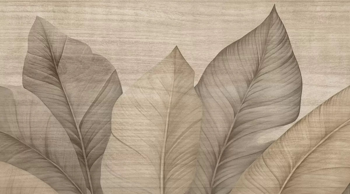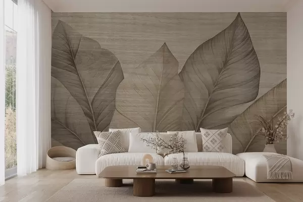 Carta da parati Foglie nitide con texture in sovrimpressione nr. w04438