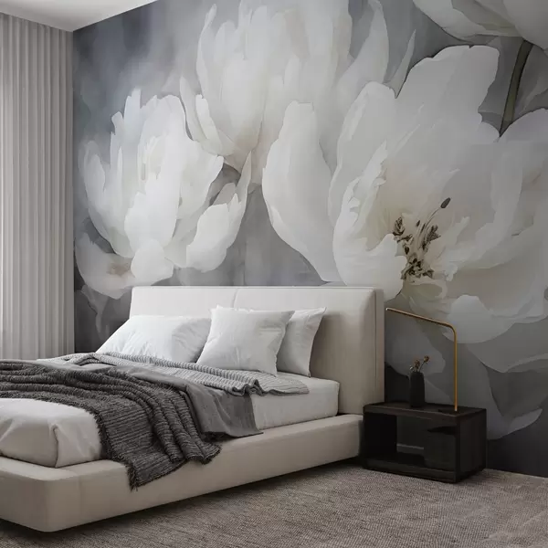Carta da parati Fiori bianchi su uno sfondo nebbioso e delicato nr. w04441