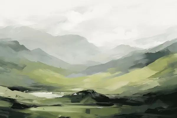 Carta da parati Paesaggio montano astratto nei toni del verde nr. w04447