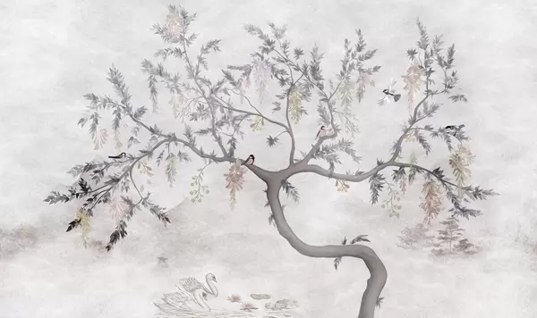 Carta da parati Ramo di albero con uccelli in stile orientale nr. w04456