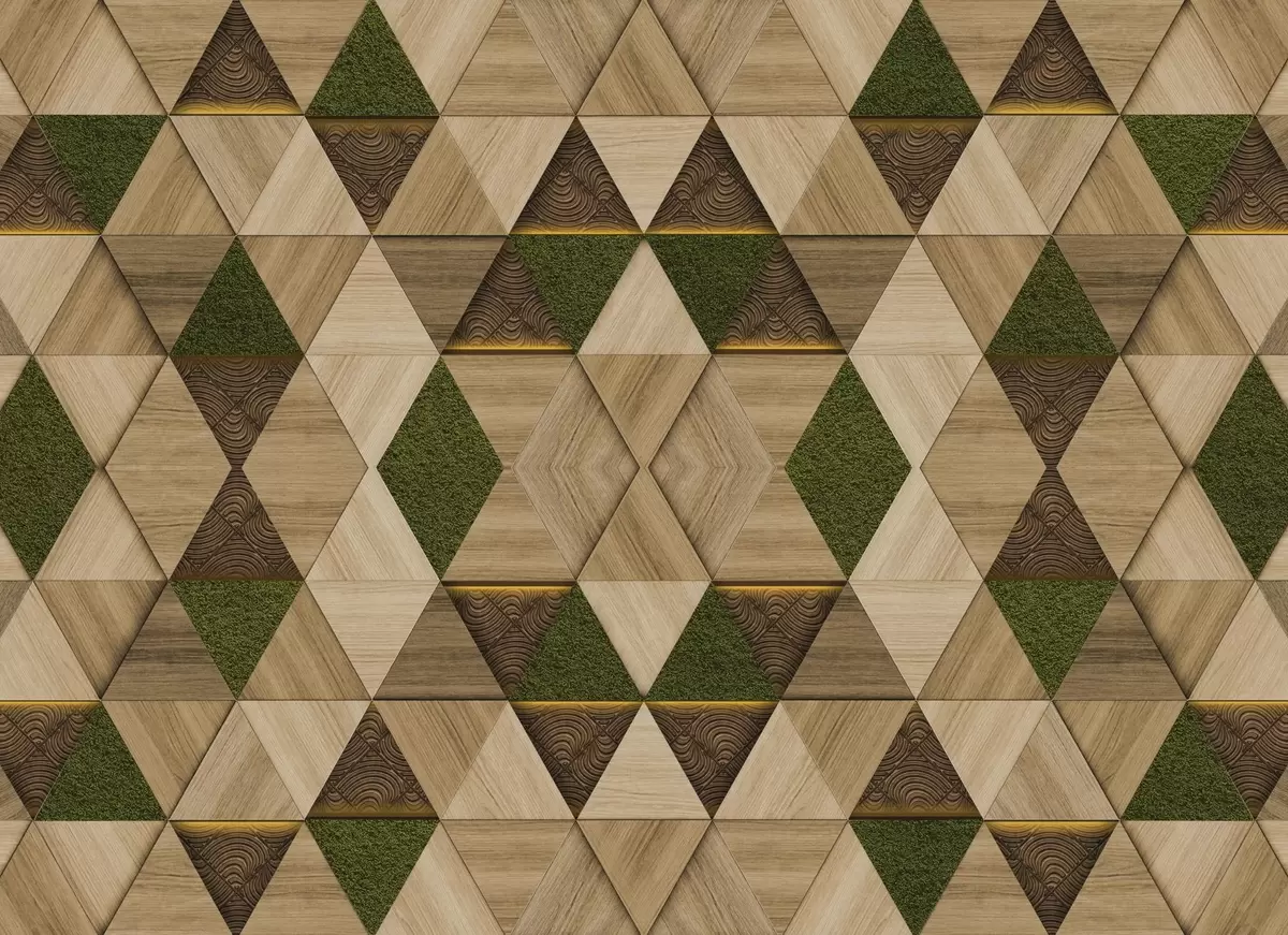 Carta da parati Ornamento geometrico in legno con muschio nr. w04459