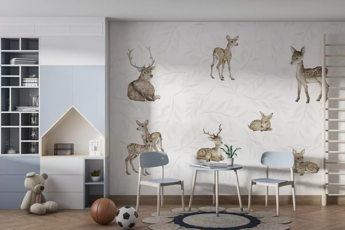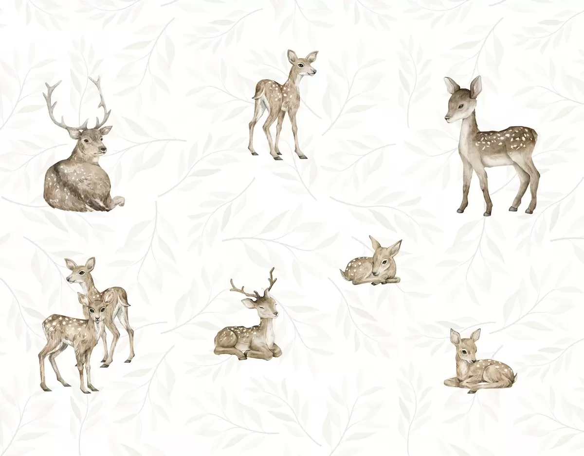 Carta da parati Cute fawns su uno sfondo chiaro con ramoscelli nr. w04461