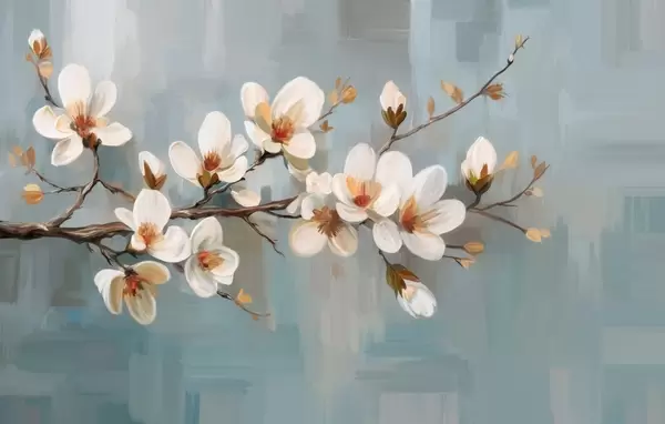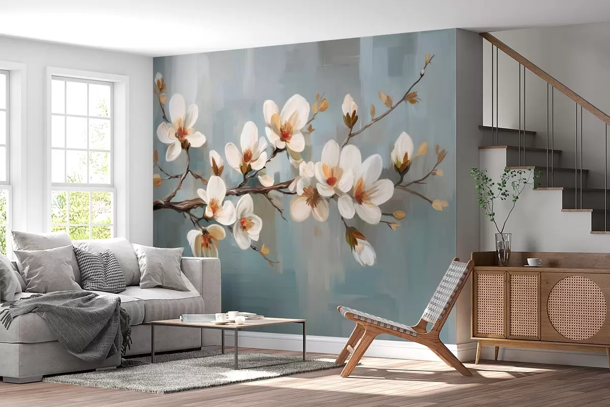 Carta da parati Un ramo in fiore nello stile della pittura ad olio su sfondo blu nr. w04496