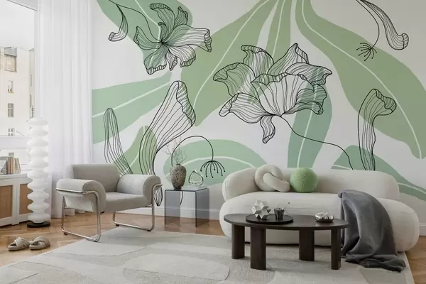 Carta da parati foglie e fiori astratti nei toni del verde nr. w04499v1