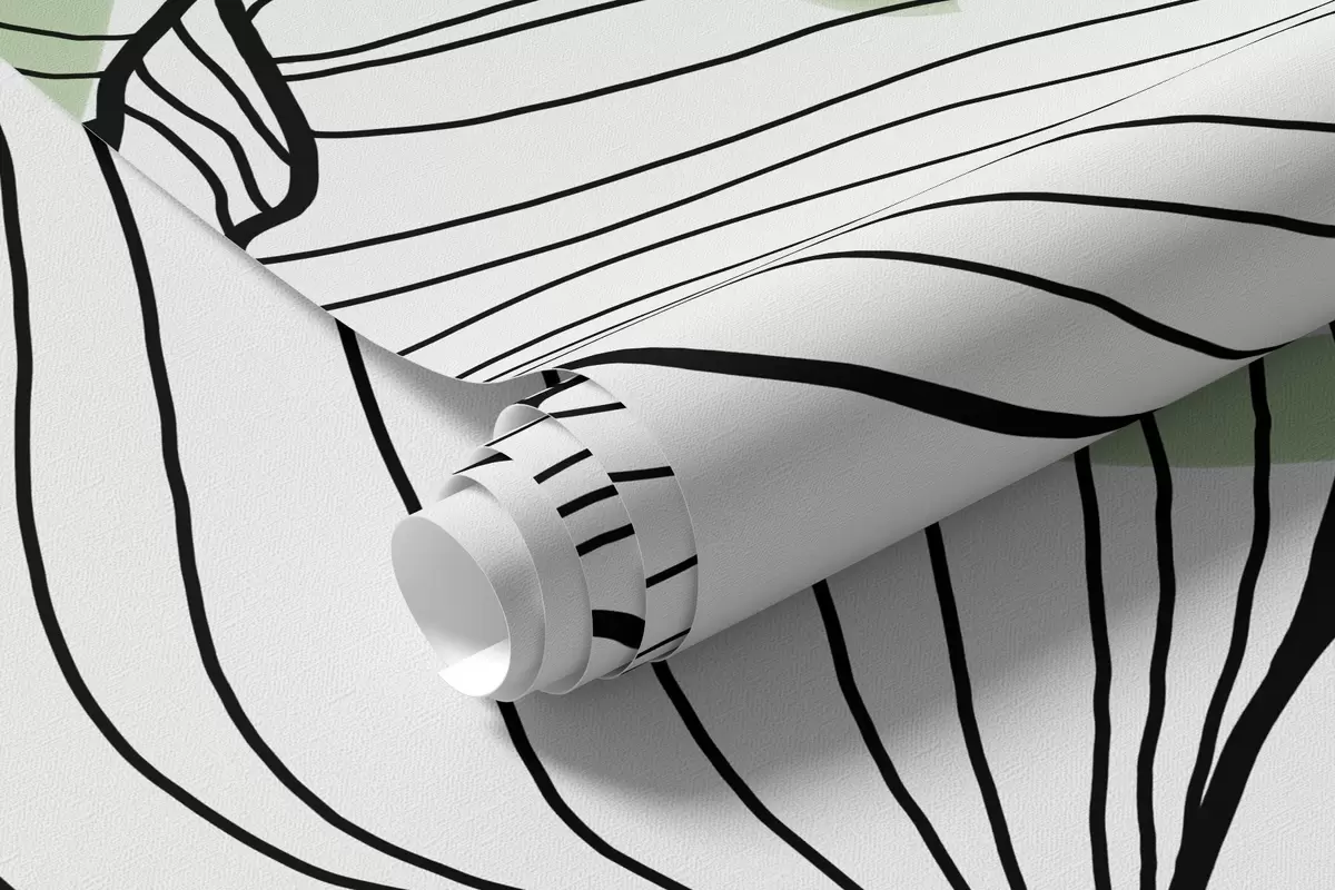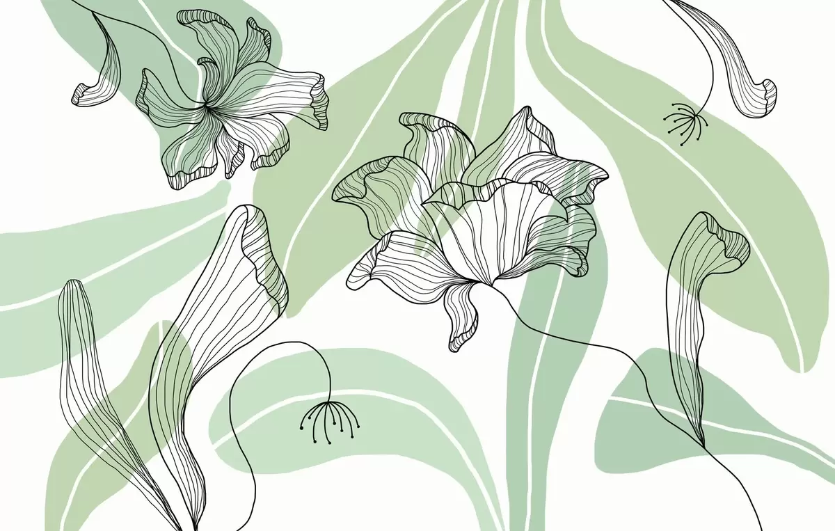 Carta da parati foglie e fiori astratti nei toni del verde nr. w04499v1