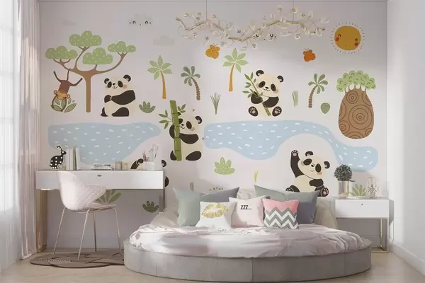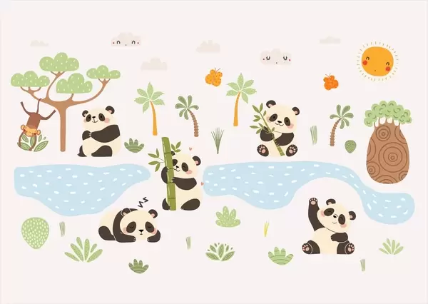 Carta da parati Panda allegri in riva al fiume nr. w04541