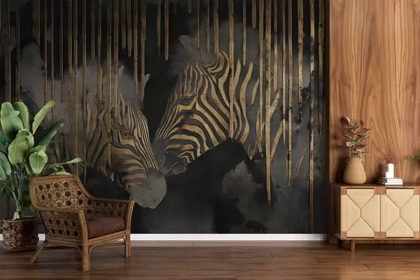 Carta da parati Zebre su sfondo nero astratto nr. w04548