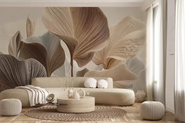 Carta da parati Eleganti foglie beige con una delicata trama lineare nr. w04549