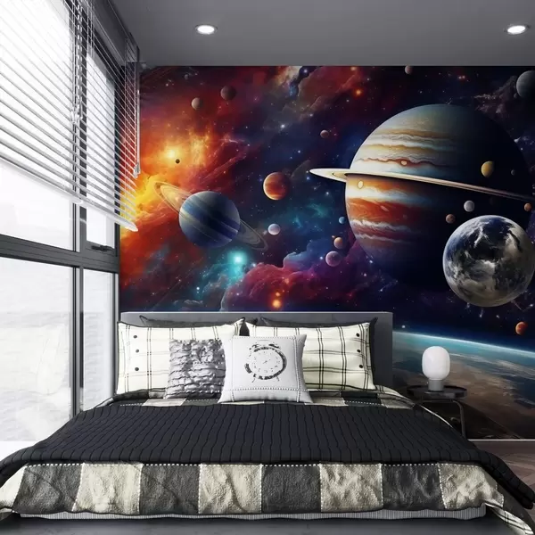 Carta da parati Cosmo colorato con pianeti e nebulose nr. w04576