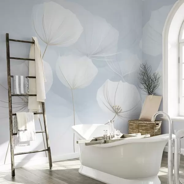 Carta da parati Fiori bianchi ariosi su sfondo blu nr. w04580