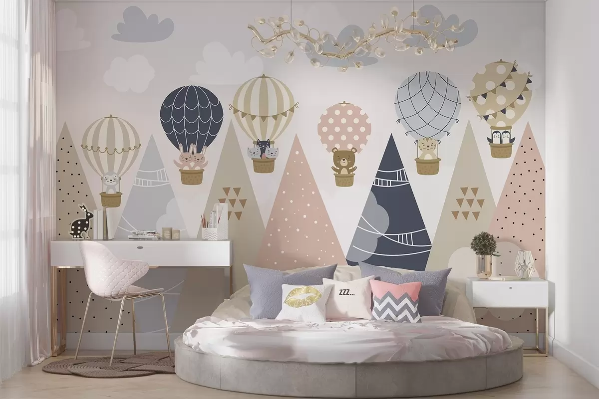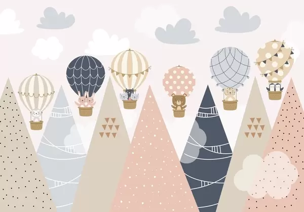 Carta da parati Palloncini con animali sopra le montagne nr. w04587