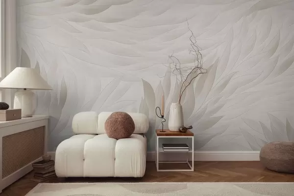 Carta da parati Foglie ondulate in delicate tonalità crema nr. w04610