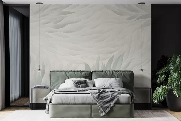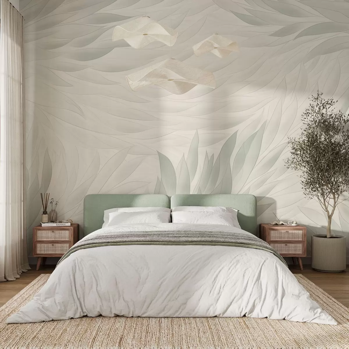 Carta da parati Foglie ondulate in delicate tonalità verde-beige nr. w04610v2