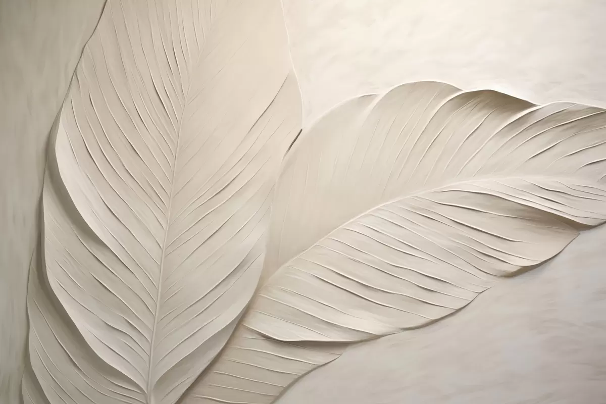 Carta da parati Foglie beige in rilievo con ombre morbide nr. w04614