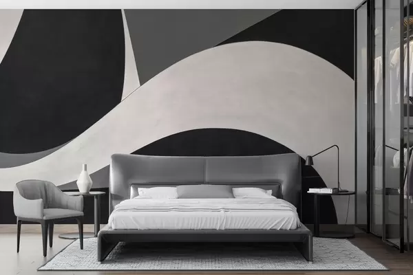 Carta da parati Astrazione in nero e grigio con una morbida onda nr. w04615