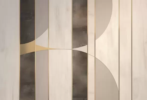 Carta da parati Pannelli geometrici con archi e accenti color champagne nr. w04616