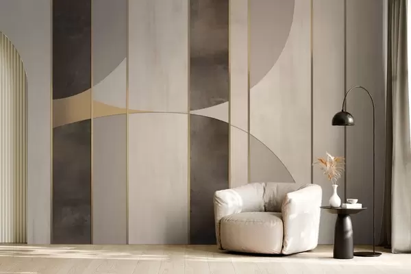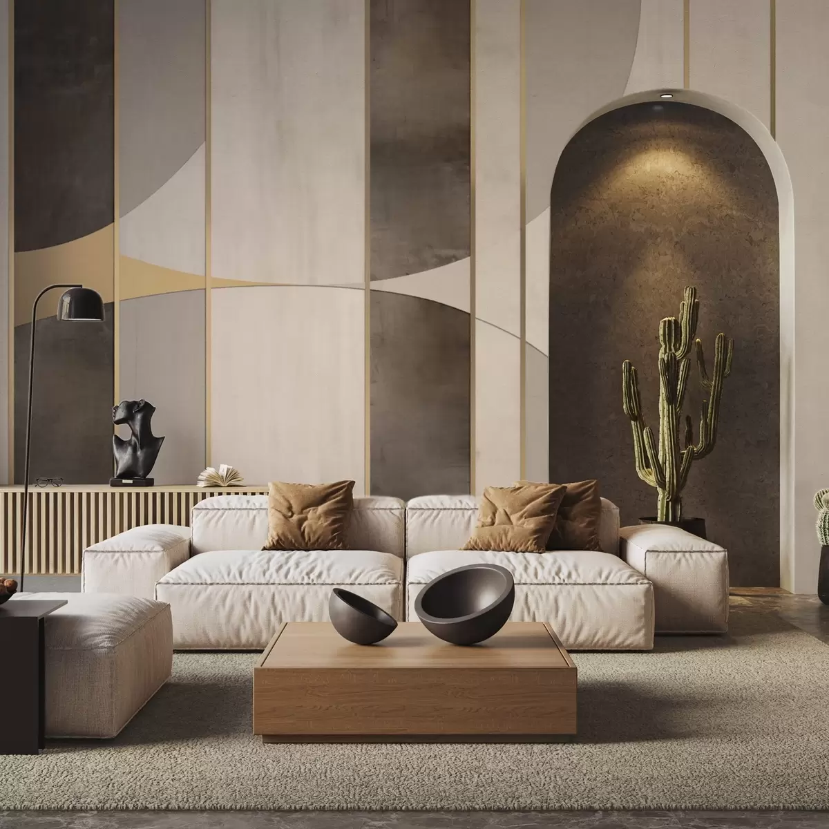 Carta da parati Pannelli geometrici con archi e accenti color champagne nr. w04616