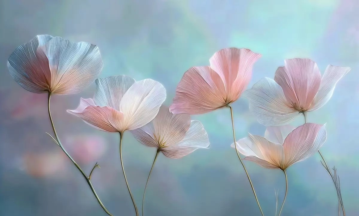 Carta da parati Petali trasparenti nei toni pastello del rosa e dell'azzurro nr. w04621