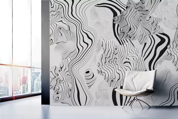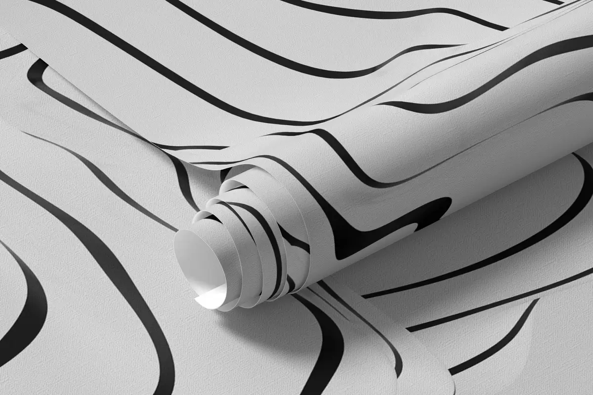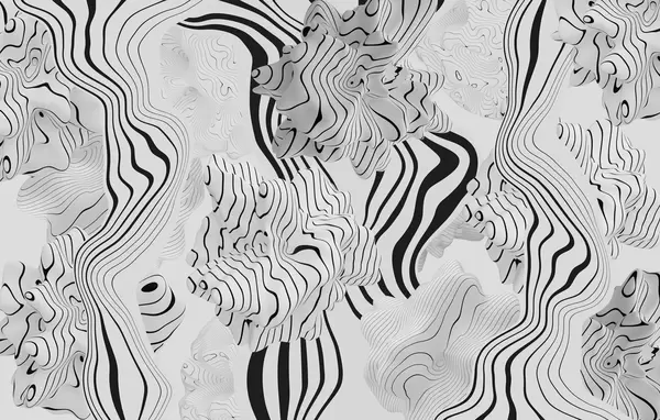 Carta da parati forme organiche astratte in stile 3D nei toni del bianco e del grigio con strisce nere nr. w04627