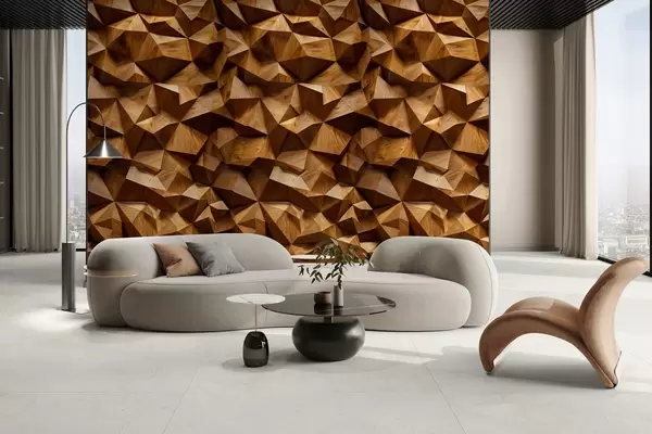 Carta da parati imitazione di una parete angolare in rilievo realizzata in legno nr. w04632