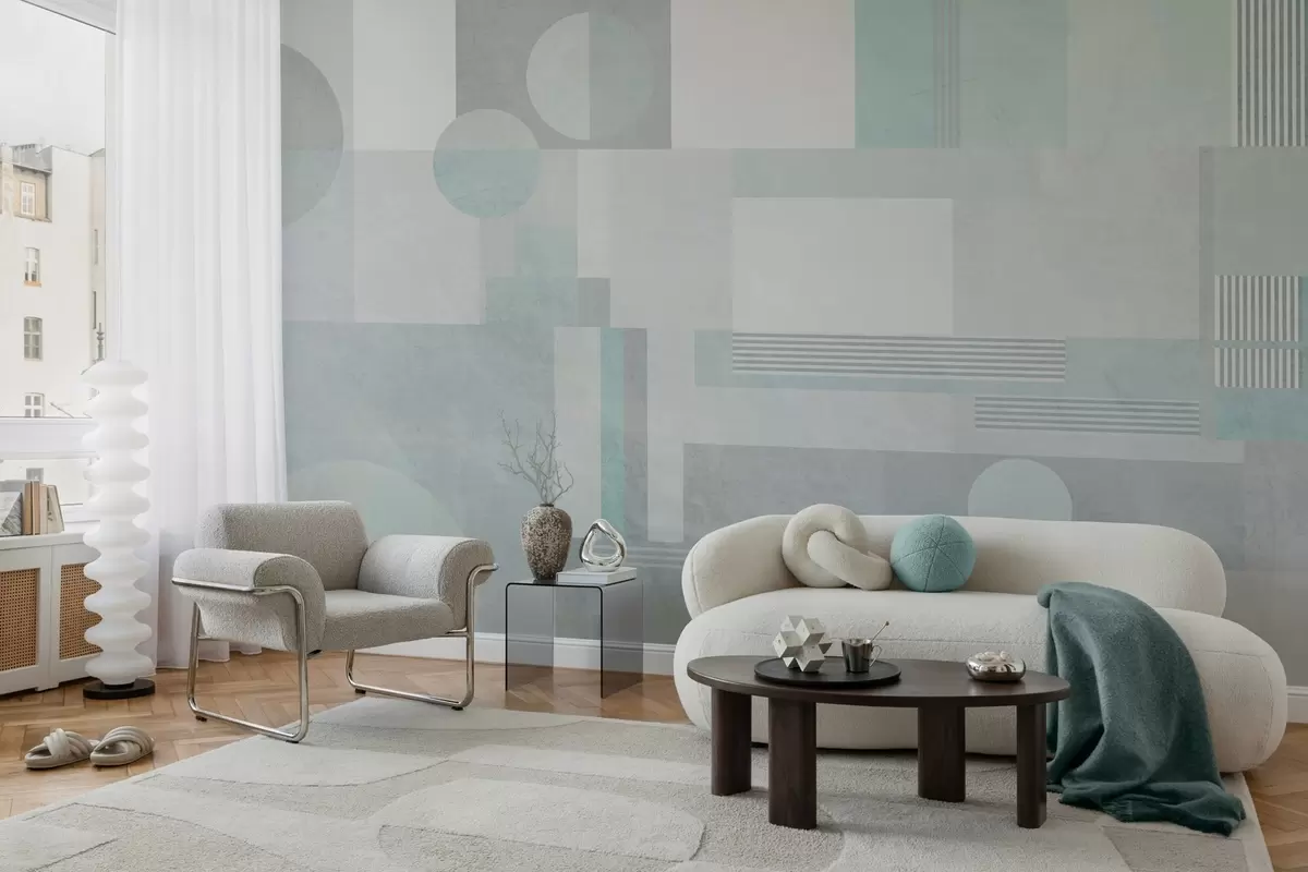 Carta da parati geometria astratta nei toni del grigio-verde nr. w04635v3
