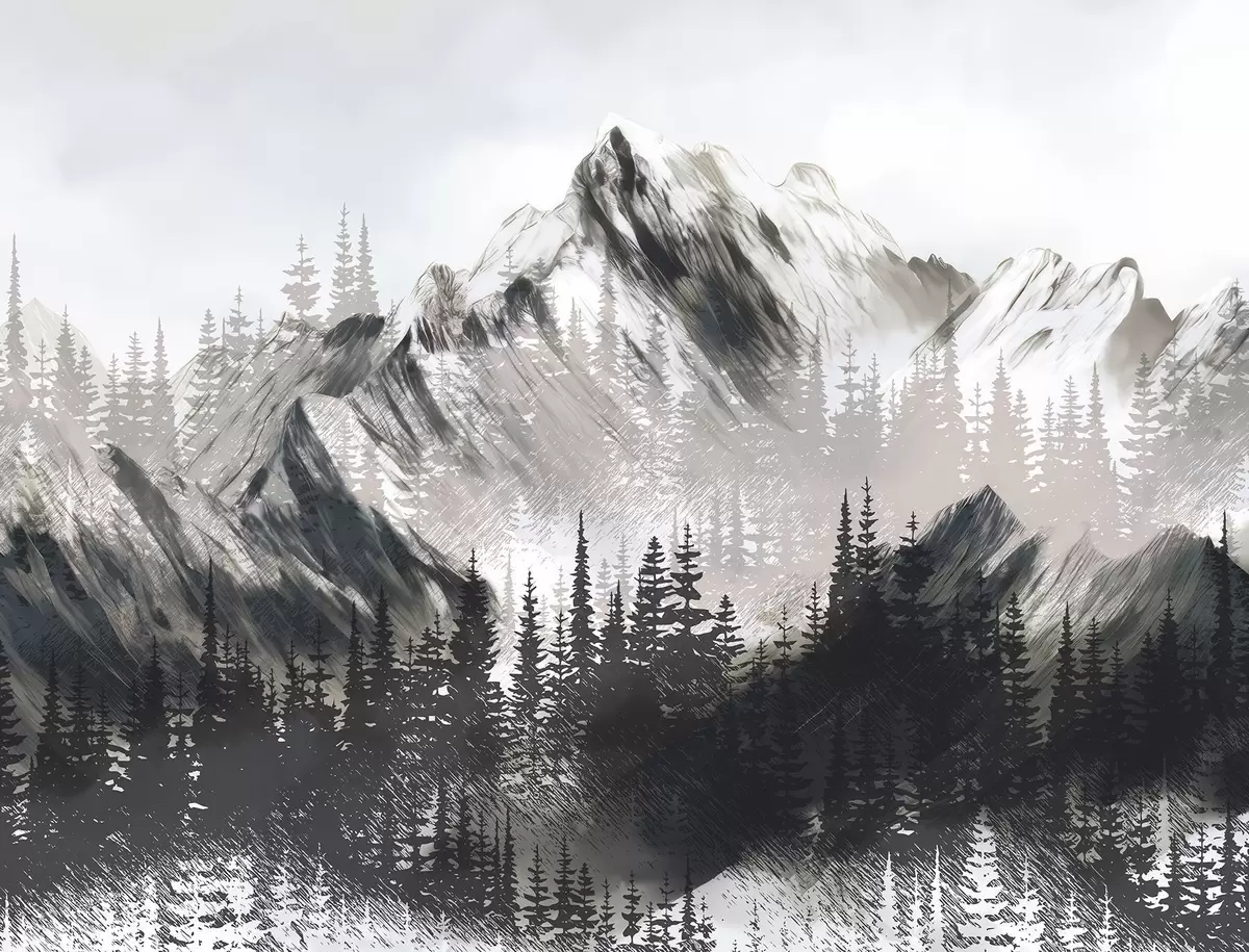 Carta da parati Montagne e foreste di conifere nr. w04666
