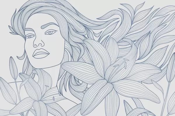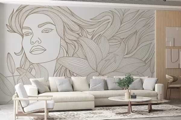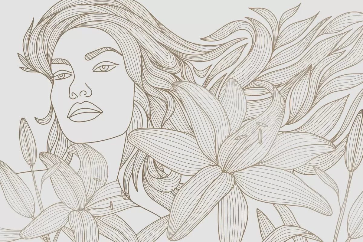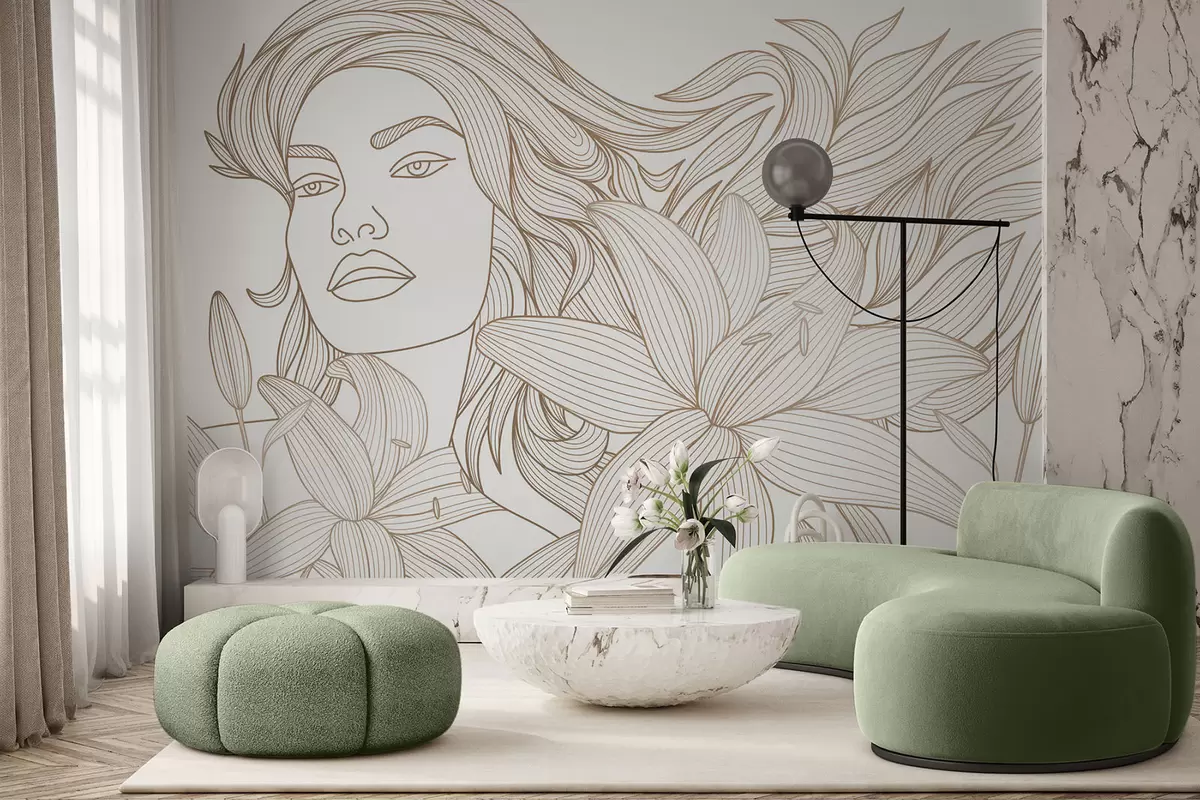 Carta da parati Ritratto di una ragazza tra fiori di giglio nei toni del beige nr. w04689v1
