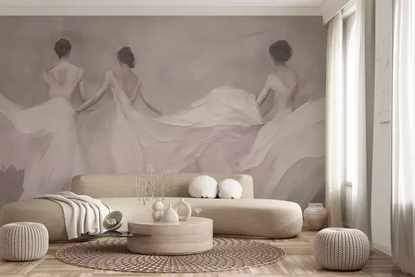 Carta da parati Tre donne in abiti rosa, tessuto fluido, morbidezza nr. w04709