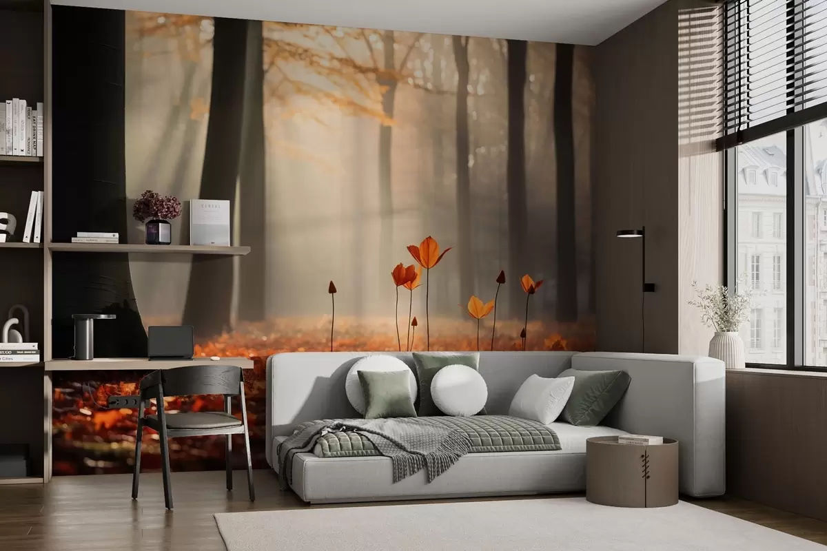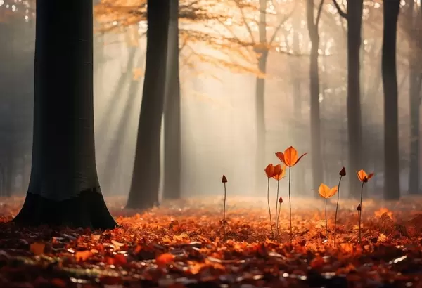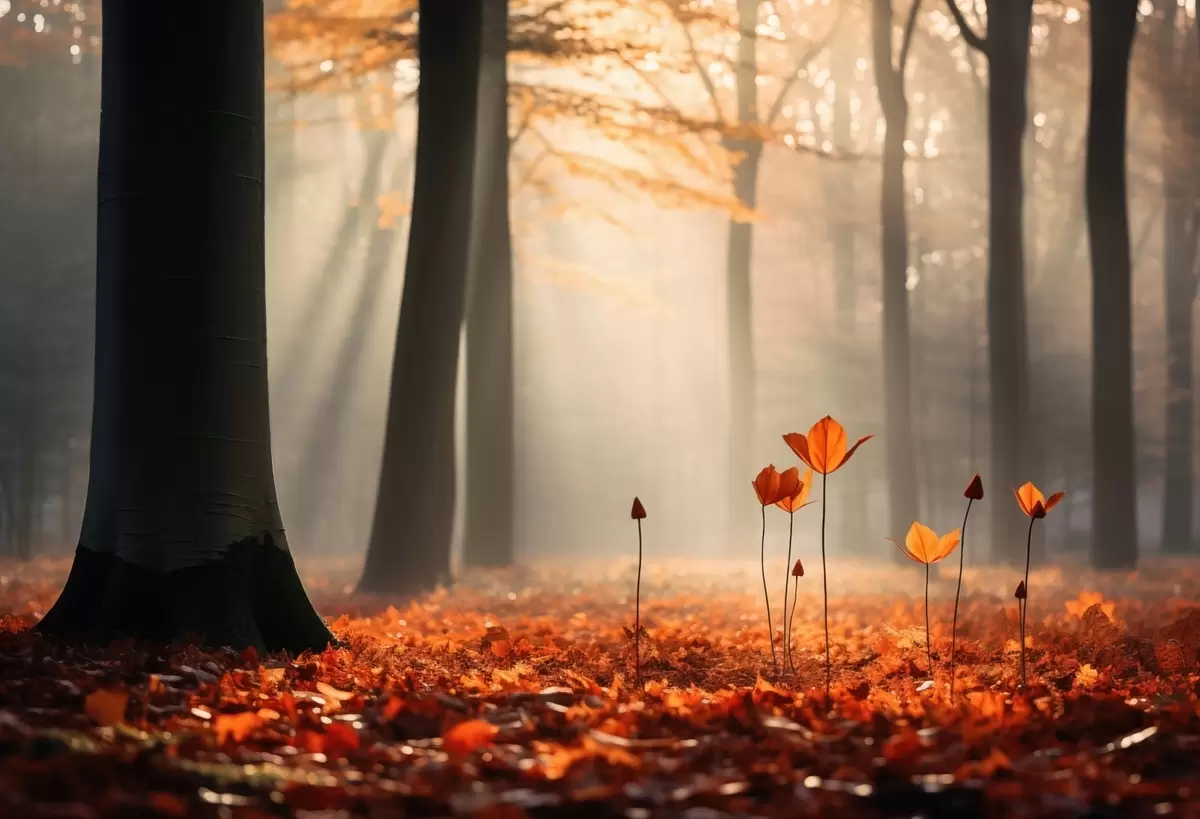 Carta da parati Foresta autunnale con raggi di sole e fogliame brillante nr. w04710