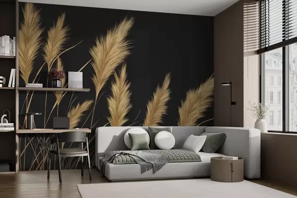 Carta da parati Spighe di grano soffici su sfondo scuro nr. w04734