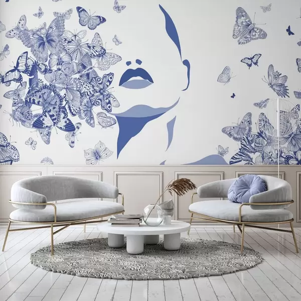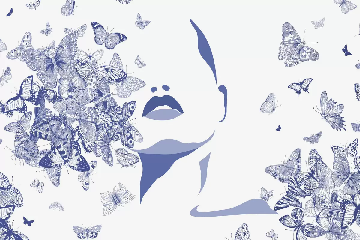 Carta da parati Sagoma di un volto tra le farfalle nr. w04778v1