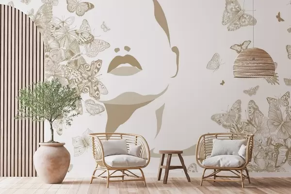 Carta da parati Sagoma di un volto tra le farfalle nr. w04778v2