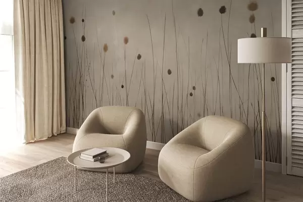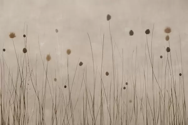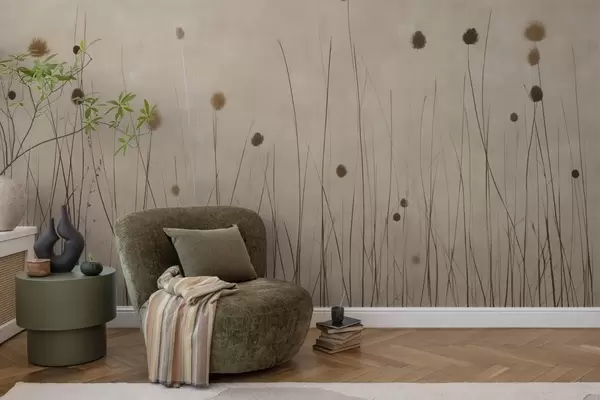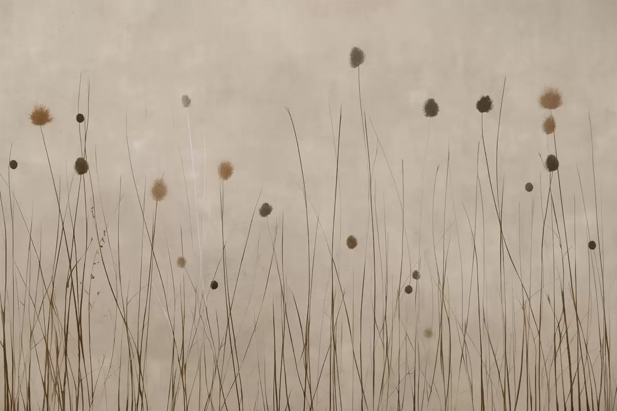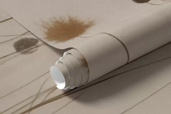 Carta da parati Erbe sottili e soffici capolini su uno sfondo beige caldo nr. w04793