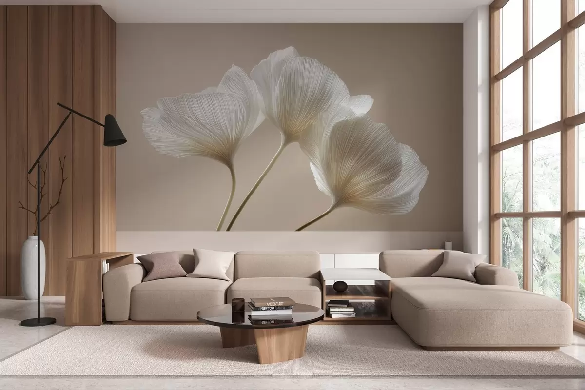 Carta da parati tre delicati fiori su sfondo beige nr. w04810