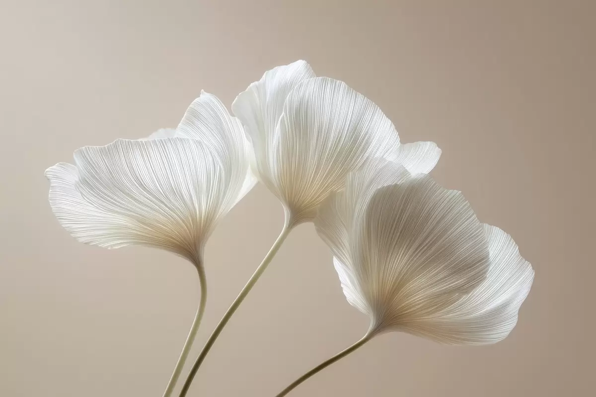 Carta da parati tre delicati fiori su sfondo beige nr. w04810