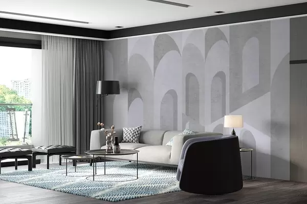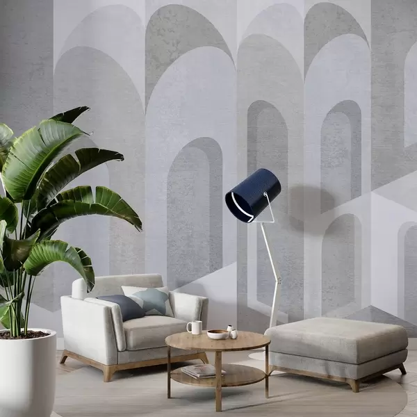 Carta da parati metamorfosi urbane dell'arco nei toni del grigio e del blu nr. w04812v2