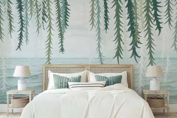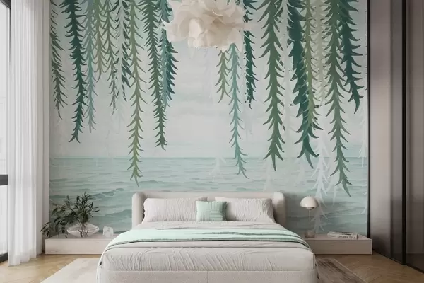 Carta da parati Delicati rampicanti che pendono sull'acqua in stile acquerello nr. w04830