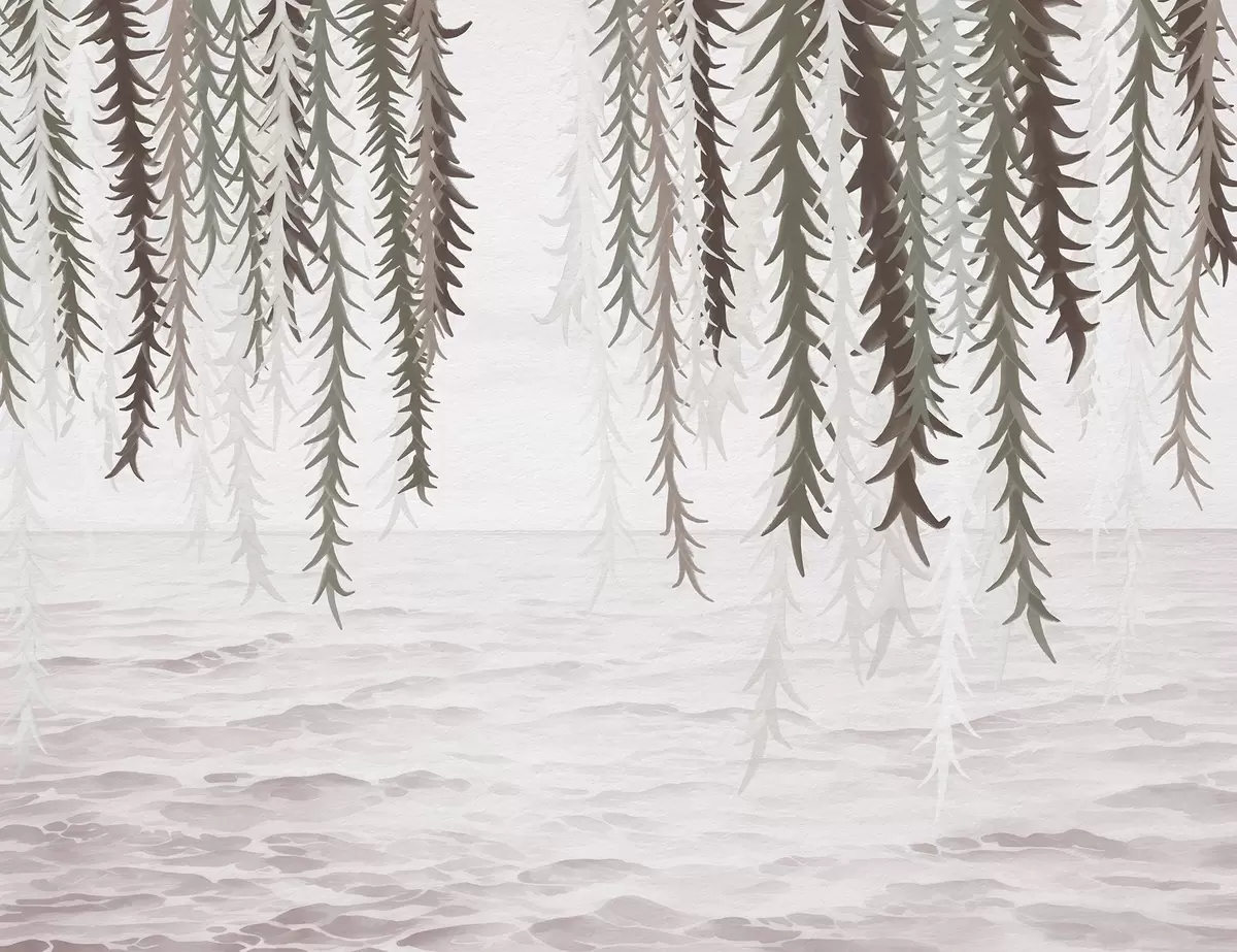 Carta da parati Delicati rampicanti che pendono sull'acqua in stile acquerello nr. w04830v2