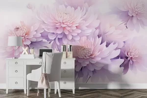 Carta da parati Lussureggianti crisantemi acquerellati su sfondo chiaro nr. w04832