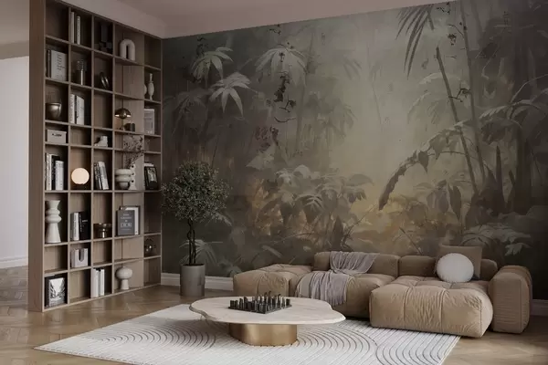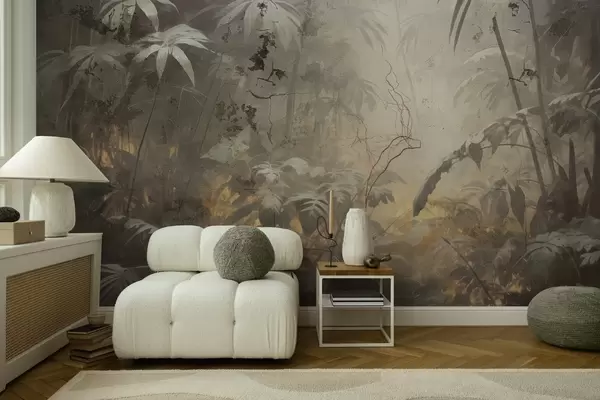 Carta da parati Giungla dipinta dietro un muro di cemento grunge nr. w04833