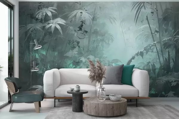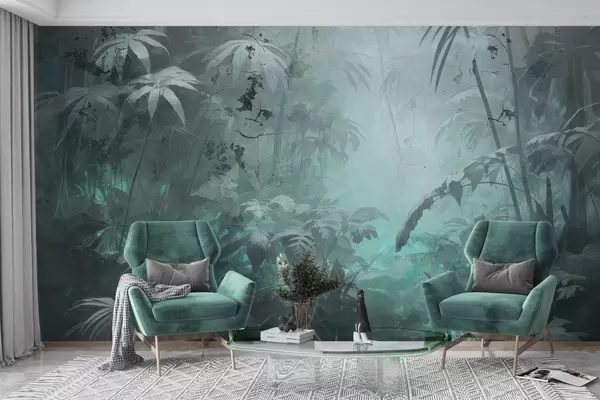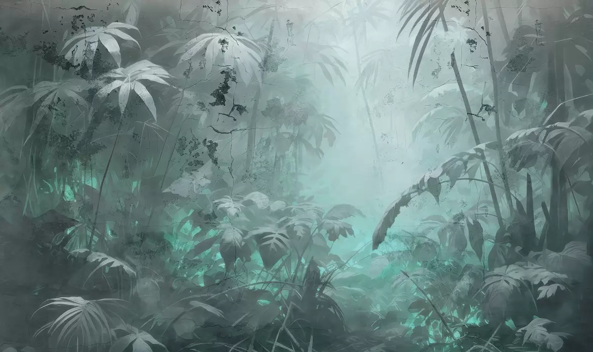 Carta da parati Giungla dipinta dietro un muro di cemento grunge nr. w04833v1