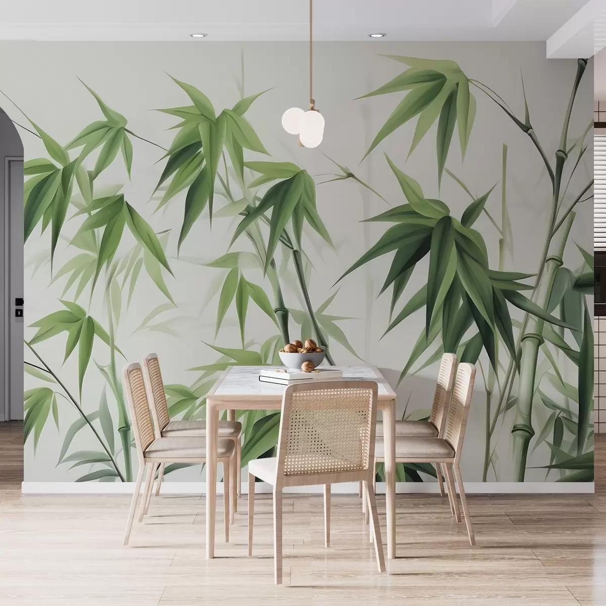 Carta da parati Bambù su sfondo acquerellato chiaro nr. w04834