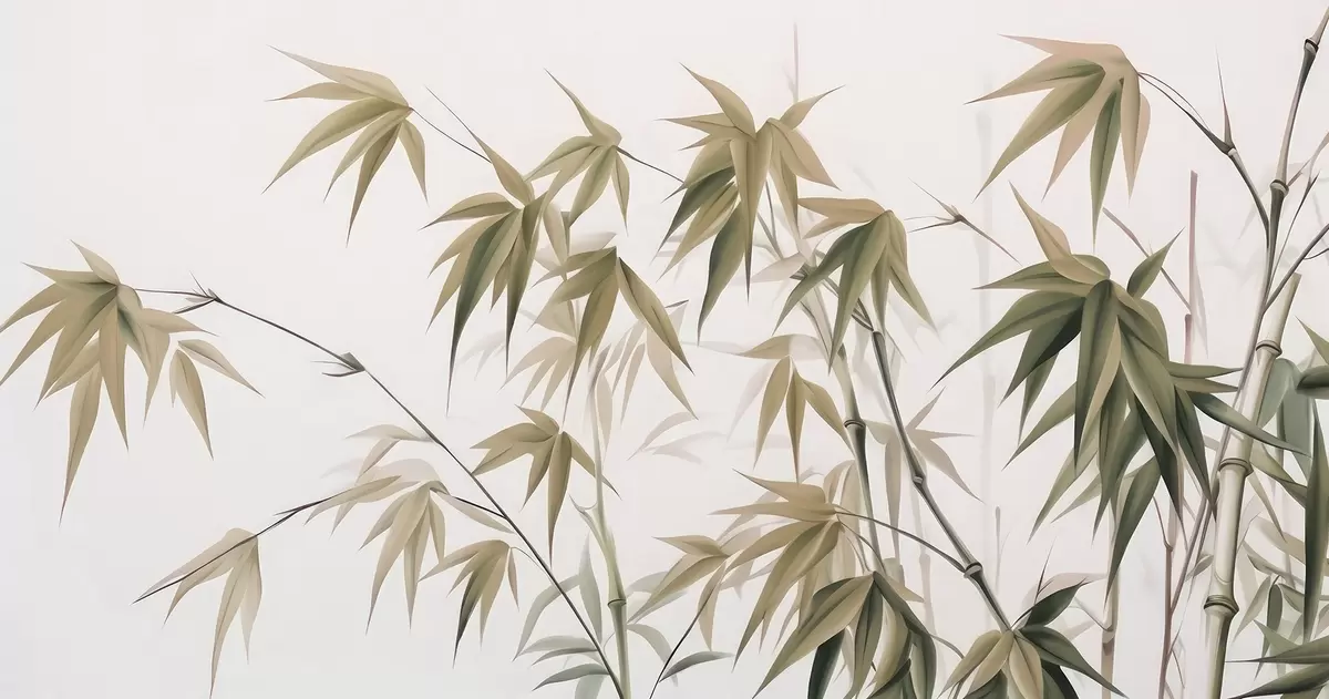 Carta da parati Bambù su sfondo acquerellato chiaro nr. w04834v1