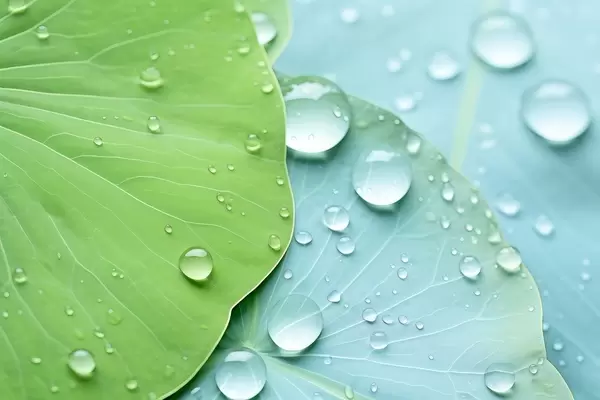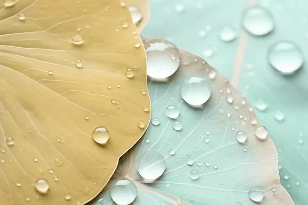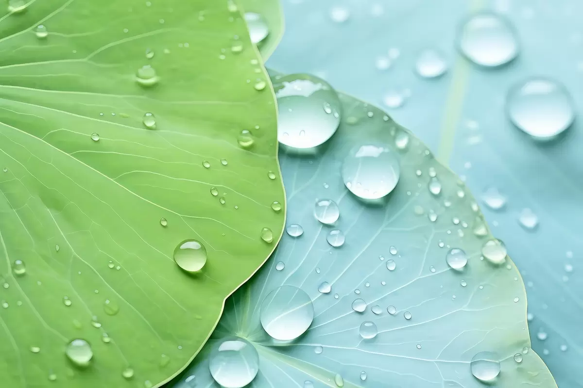Carta da parati Gocce d'acqua sulle foglie macro acquerello nr. w04838