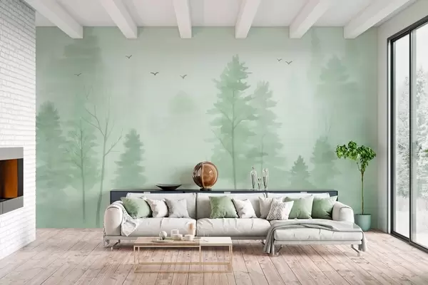 Carta da parati foresta aerea in stile acquerello nei toni del verde nr. w04872v1