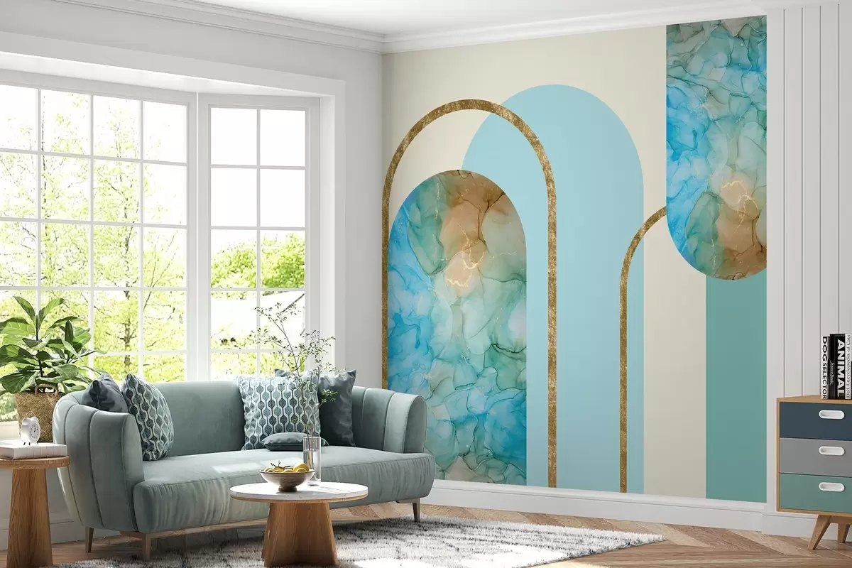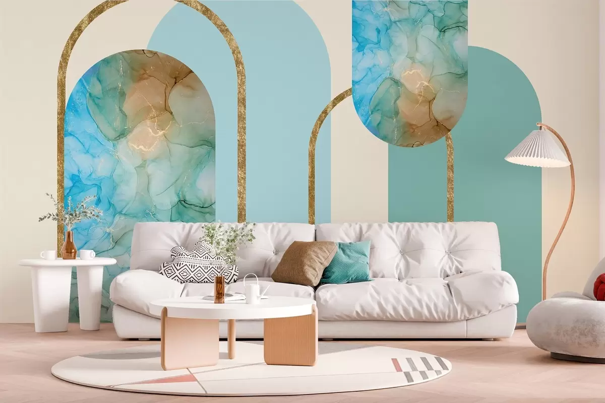 Carta da parati eleganti archi con finitura in finto marmo in stile art déco nr. w04879