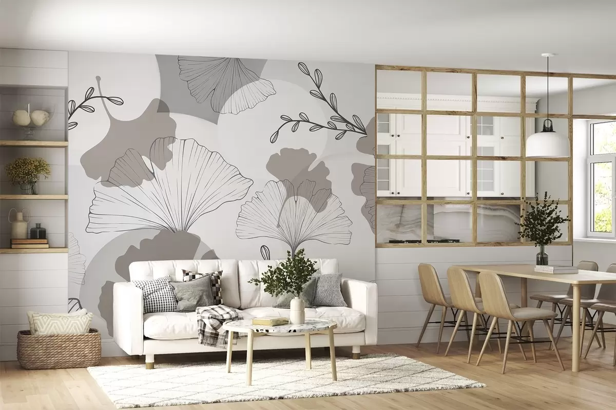 Carta da parati Foglie di ginkgo minimaliste nr. w04913